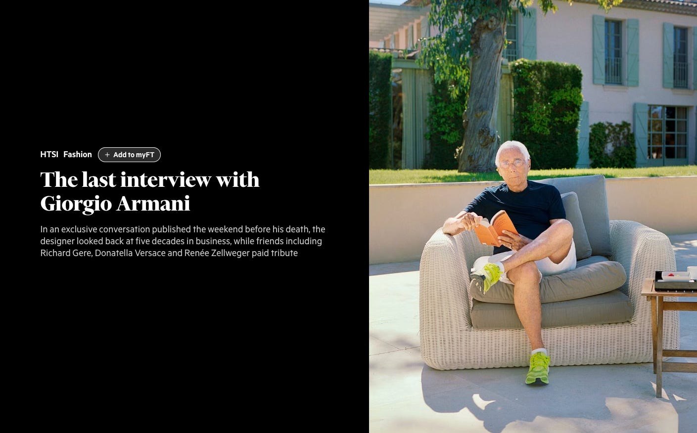 One week before the passing of Giorgi Armani, the Financial Times ran an interview with the iconic fashion designer. If you are interested in ownership, entrepreneurship, or the fashion industry more broadly, it’s well worth your time.